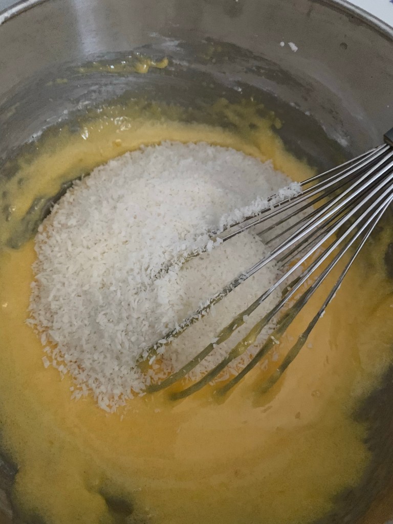Ajouter la noix de coco et bien mélanger .
