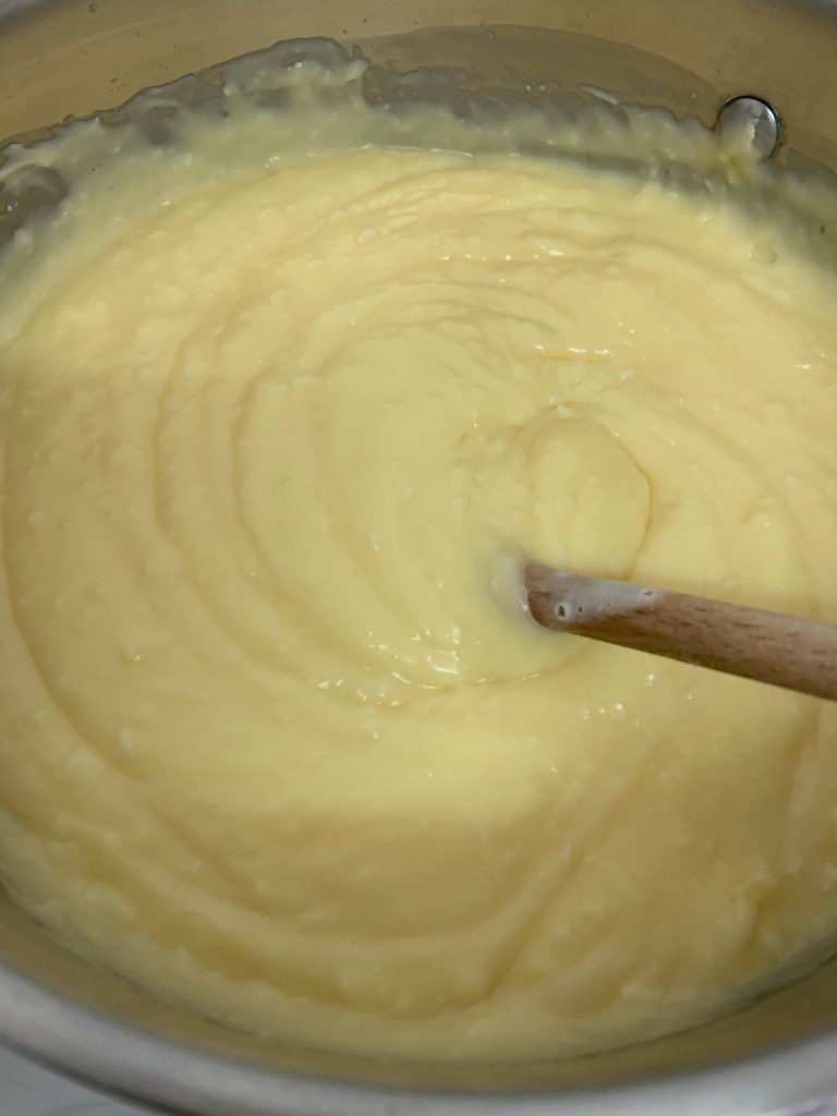 Reverser le tout dans la casserole , sur feu doux en continuant de mélanger jusqu’à ce que l’appareil épaississe.
