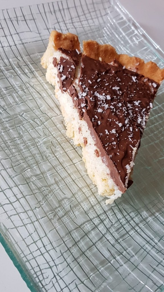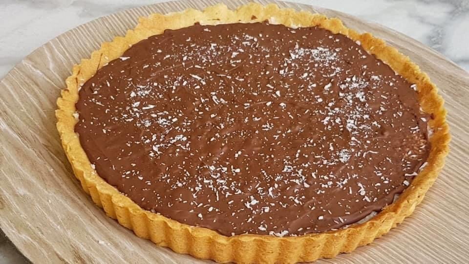 👉🏻Mélanger le lait concentré et la noix de coco râpée . 👉🏻Verser la préparation sur le fond de tarte et réserver au réfrigérateur. 👉🏻Faire fondre le chocolat au bain marie ou au micro-ondes en mélangeant toutes les trente secondes . 👉🏻Recouvrez la tarte de chocolat fondu et lissez à l’aide d’une spatule . 👉🏻Réservez au frais le temps que le chocolat fige .