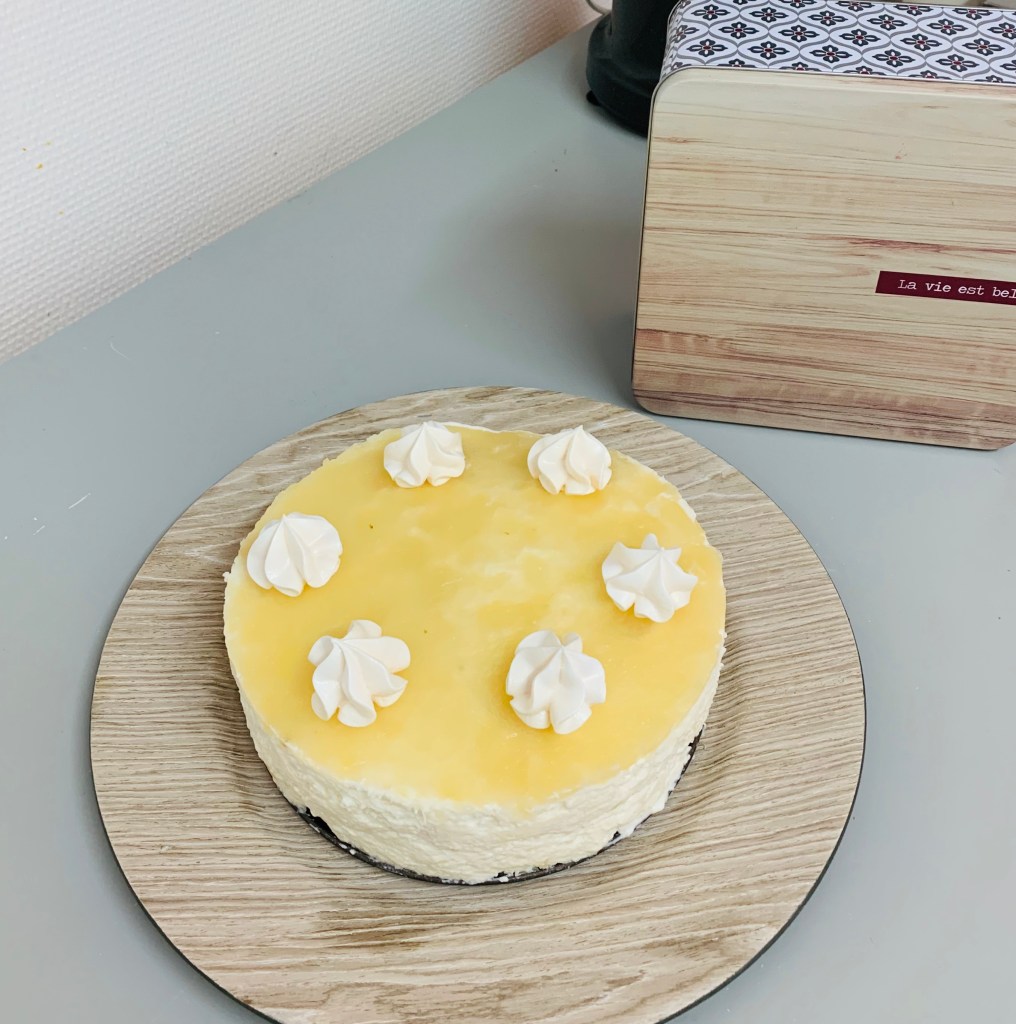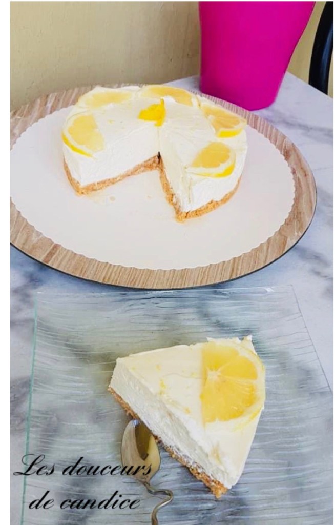 J’ai choisi de décorer le cheesecake avec des tranches de citron tout simplement .