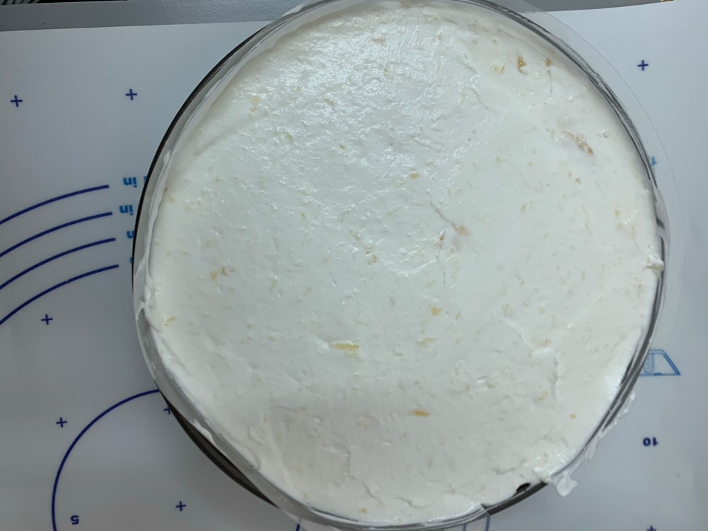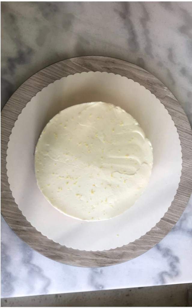 👉🏻Verser l’appareil à cheesecake sur la base du biscuit .