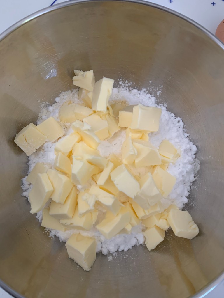 Pâtesablée : 👉🏻Dans un saladier , mélanger la farine, le sucre , le sel et le beurre à température ambiante.