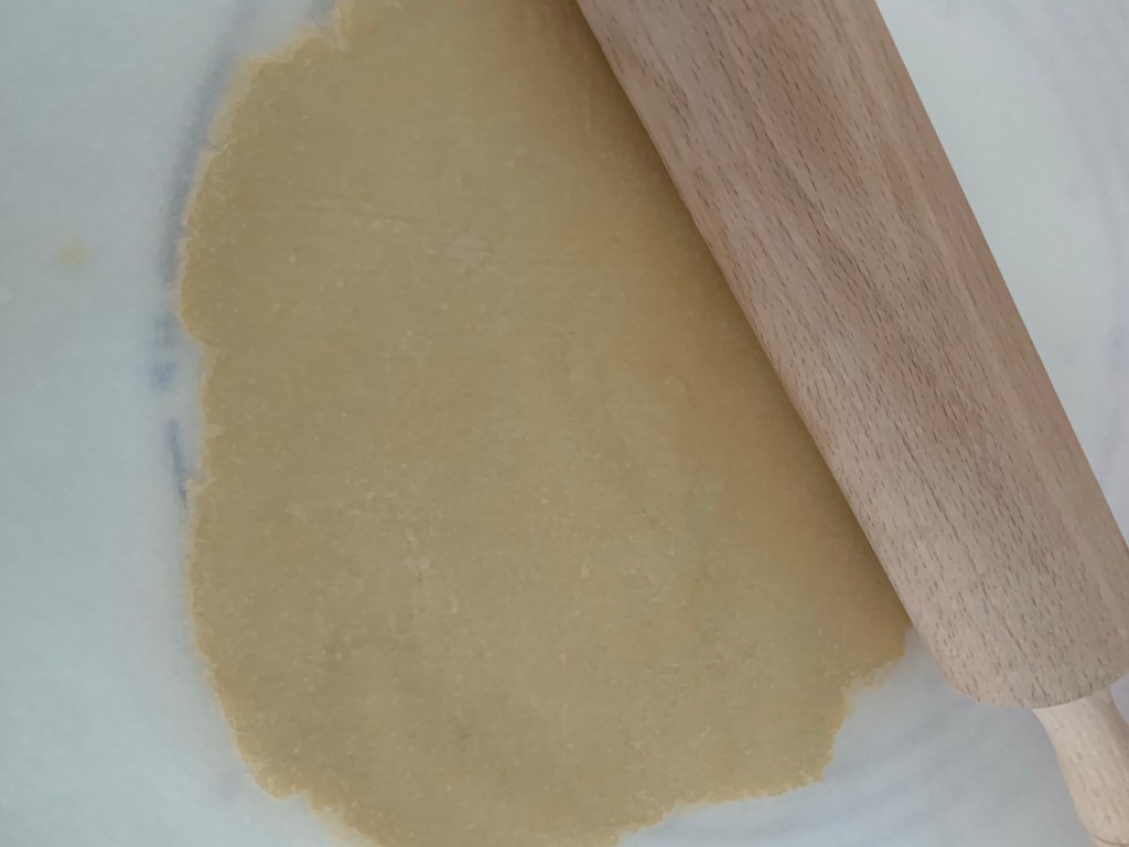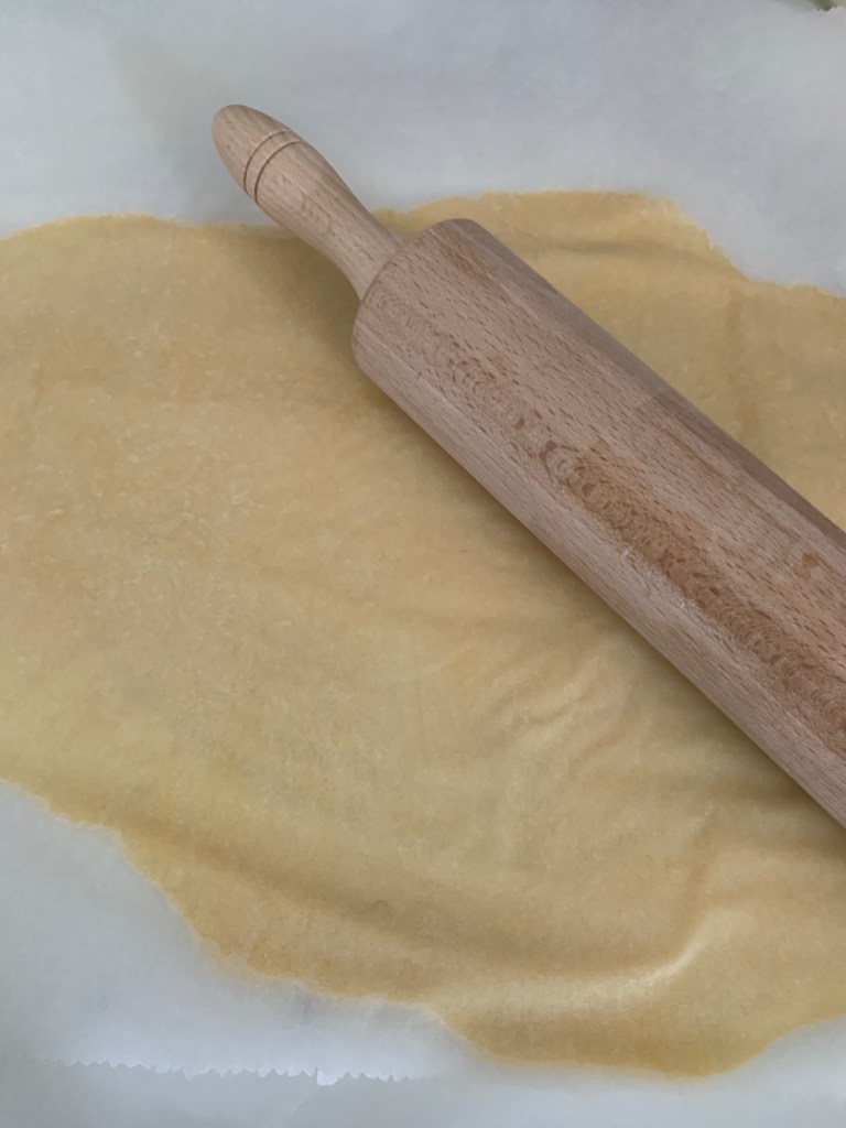 👉🏻Étaler la pâte entre deux feuilles de papier sulfurisé.