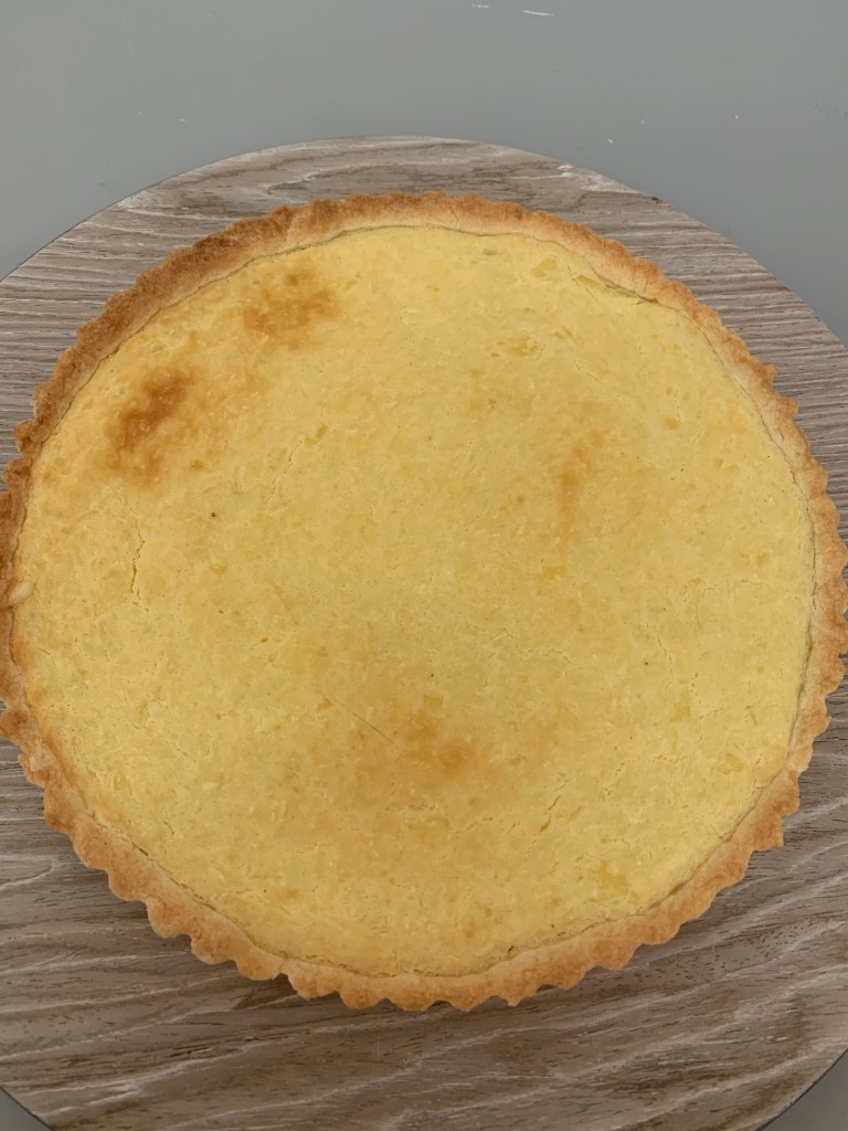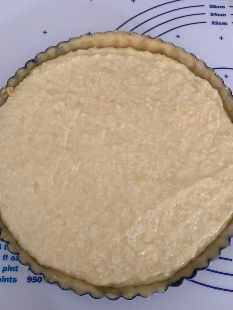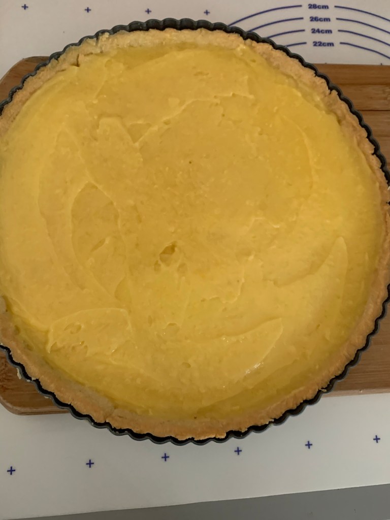 👉🏻Verser la crème sur le fond de tarte .
