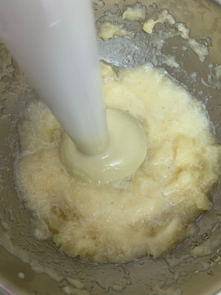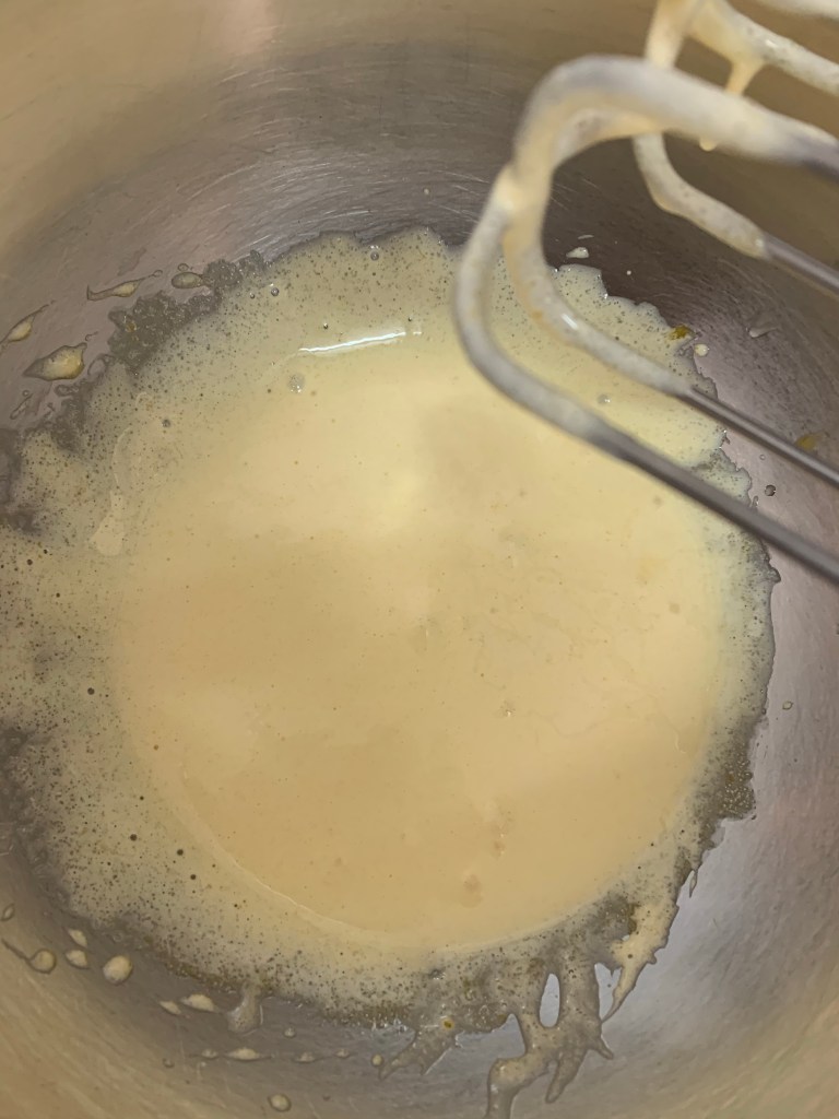 👉🏻Ajouter les œufs un à un et fouetter jusqu’à absorption complet de celui-ci.