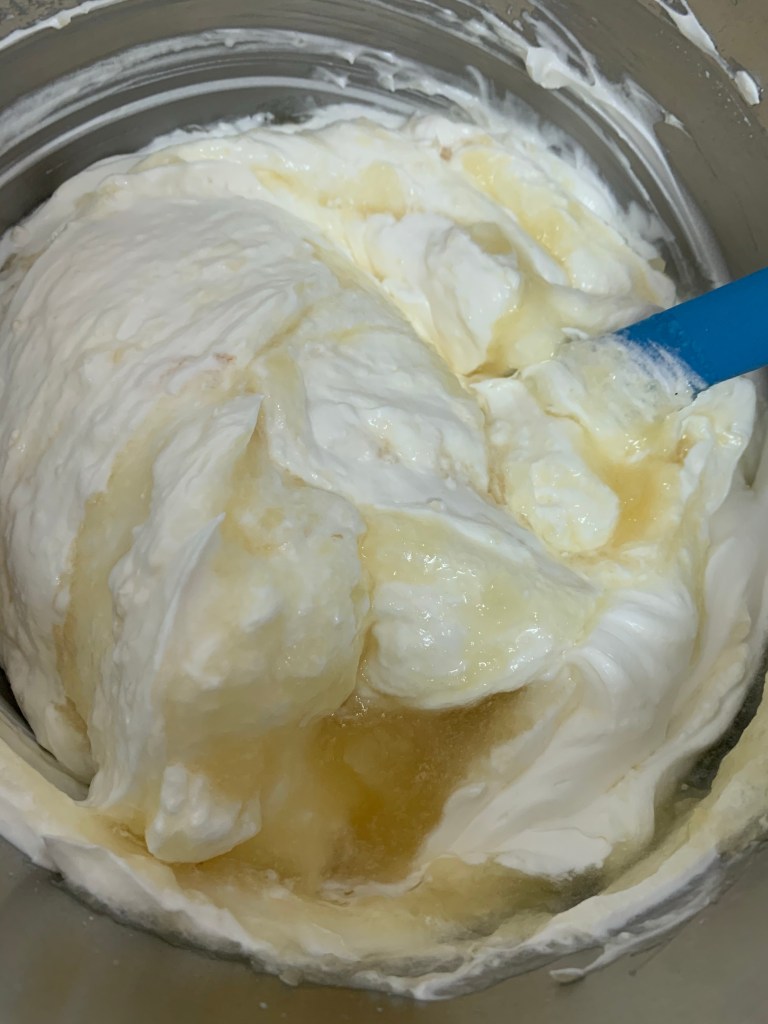 👉🏻Incorporer 1/3 de la chantilly dans le fromage frais citronné , puis ajouter le restant en mélangeant délicatement avec une maryse.