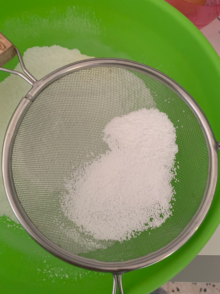 Préparation : 👉🏻Dans un saladier mélanger la farine , le sucre et la levure chimique .