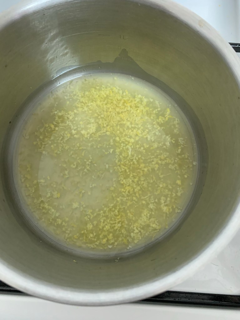 Dans une casserole porter à ébullition le jus et le zeste du citron .