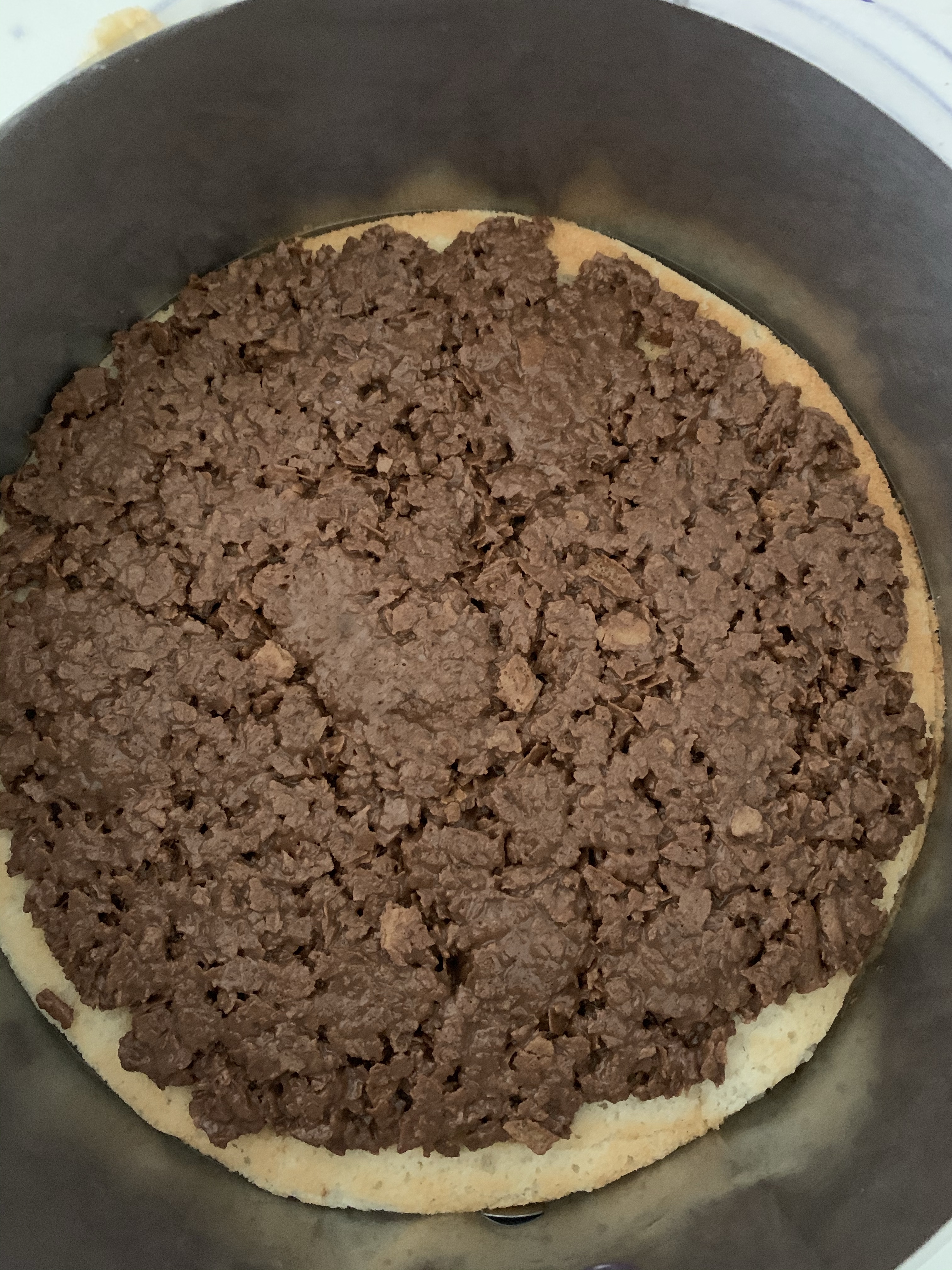 👉🏻Déposer la préparation dans le fond de votre moule , tassez bien afin d’obtenir une base compacte .