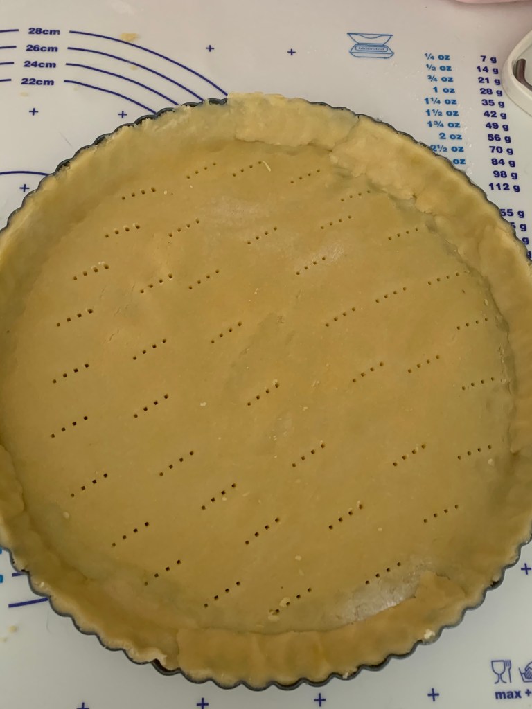 👉🏻Foncer un moule à tarte (amovible pour moi) ou un cercle de 22 cm.