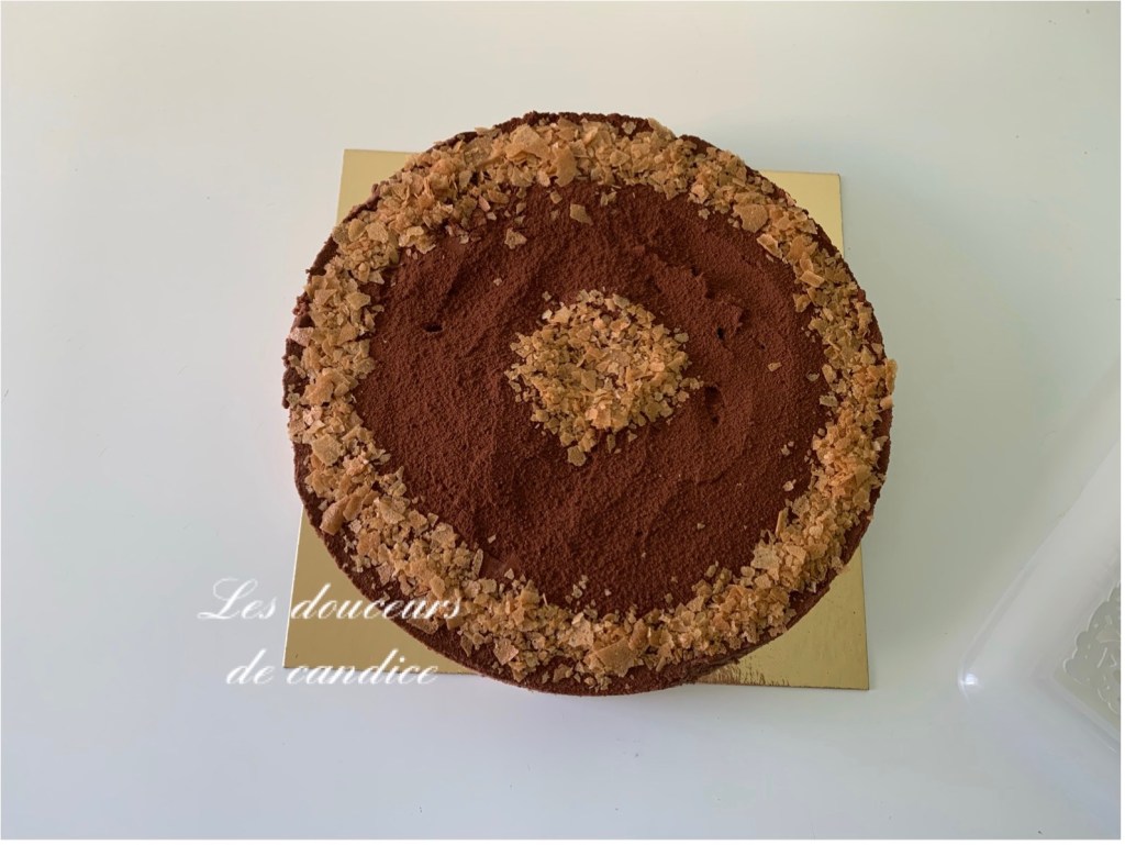 Verser la ganache sur le croustillant, lisser à l’aide d’une spatule et réserver au frais.(une nuit idéalement)
