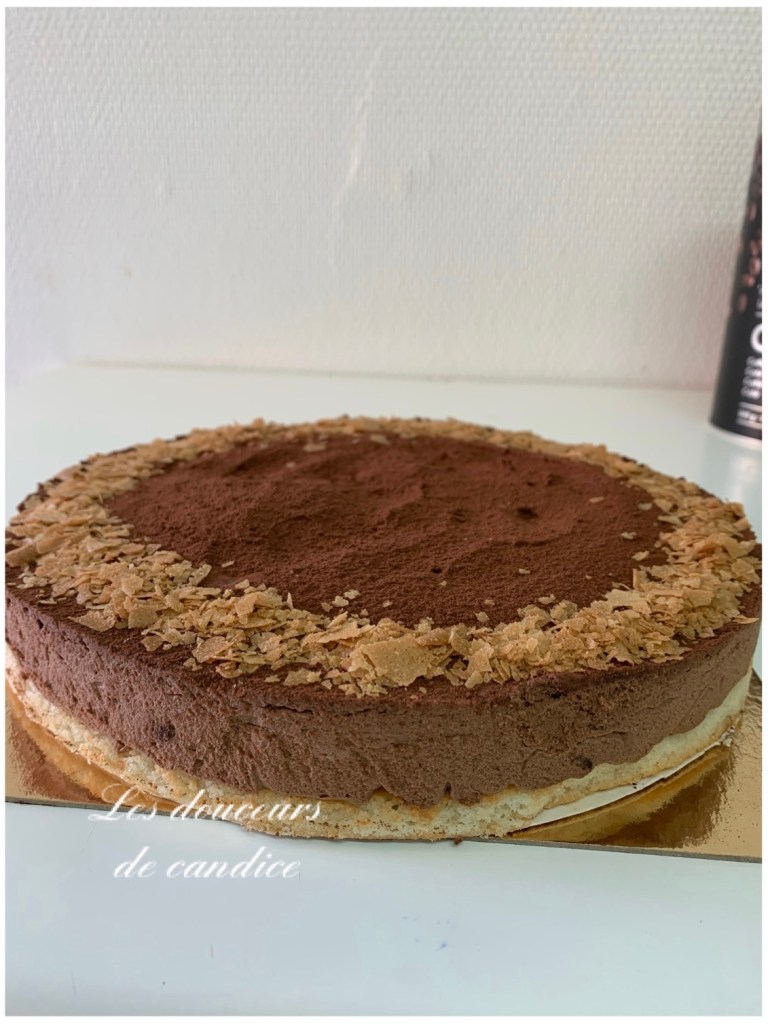 Au moment de servir saupoudrer de cacao non sucré et décercler . J’ai décoré avec des crêpes dentelles pour rappeler le croustillant.