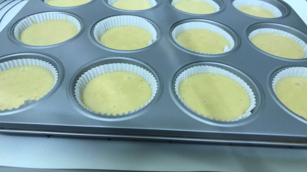 👉🏻Déposer des caissettes à muffins dans les alvéoles du moule et remplir au 3/4 de votre préparation.