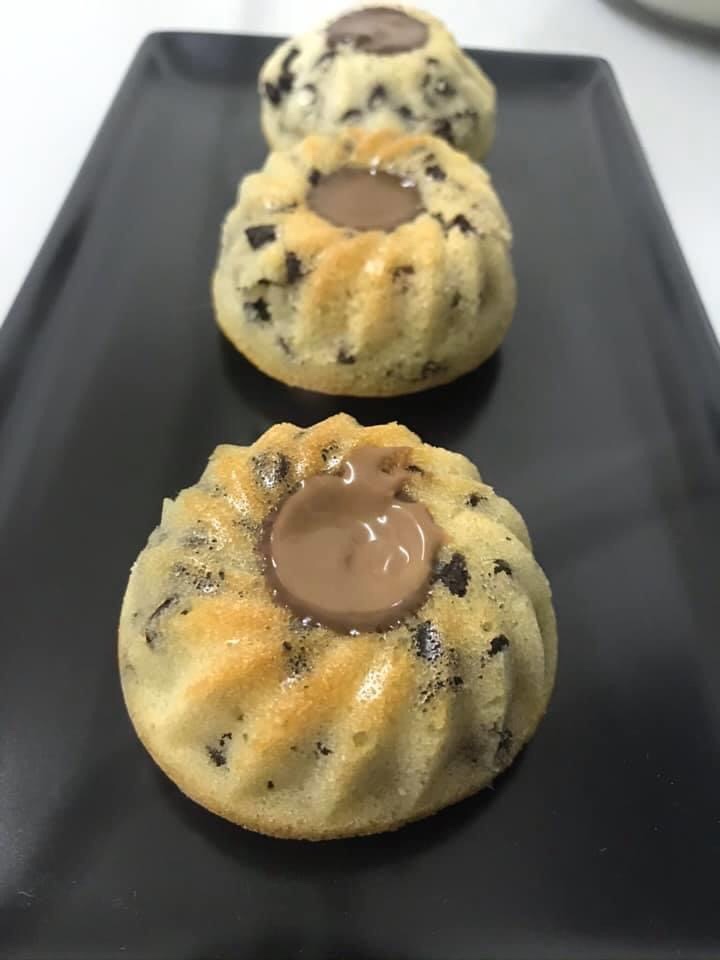 👉🏻Dans une casserole faire fondre le beurre jusqu’à ce qu’il devienne couleur ambrée , le filtrer et laisser refroidir à température ambiante. 👉🏻Préchauffer votre four à 175 degrés. 👉🏻Dans un saladier ou dans la cuve de votre robot verser la farine , le sucre glace, la poudre d’amande . Mélanger.Incorporer le sel et la levure chimique. 👉🏻Ajouter progressivement les blancs d’œufs et bien mélanger . 👉🏻Verser le beurre refroidi et mélanger. 👉🏻Incorporer les pépites de chocolat afin d’obtenir un appareil homogène . 👉🏻Verser la préparation dans les empreintes à mini kouglofs. (Ou autre moule individuel). 👉🏻Enfourner 15mn à 175 degrés. 👉🏻Laisser refroidir avant de démouler et réserver . Pour la ganache : 👉🏻Dans une casserole , porter à ébullition la crème liquide . 👉🏻La verser en 3 fois sur le chocolat coupé en morceaux en remuant entre chaque ajout . Réserver à température ambiante . 👉🏻Déposer quelques billes de chocolat croquants (si vous avez) et recouvrir de ganache au chocolat . 👉🏻Réserver afin que la ganache s’épaississe .