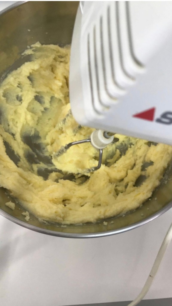 Dans un saladier fouetter le beurre mou ( sortir le beurre une heure avant de préparer la recette ) avec le sucre et les jaunes d’œufs .