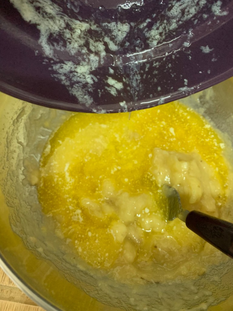 Verser la pâte dans votre moule à cake .
