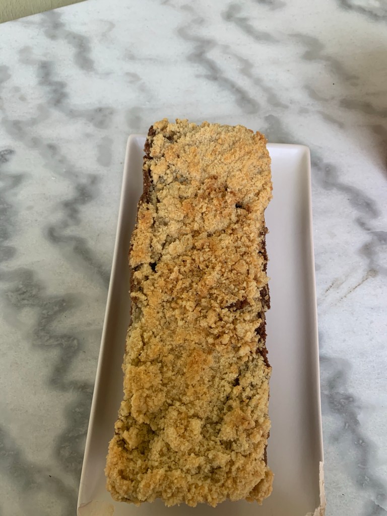 Pour un goûter réconfortant je vous propose un crumble cake choco poires .